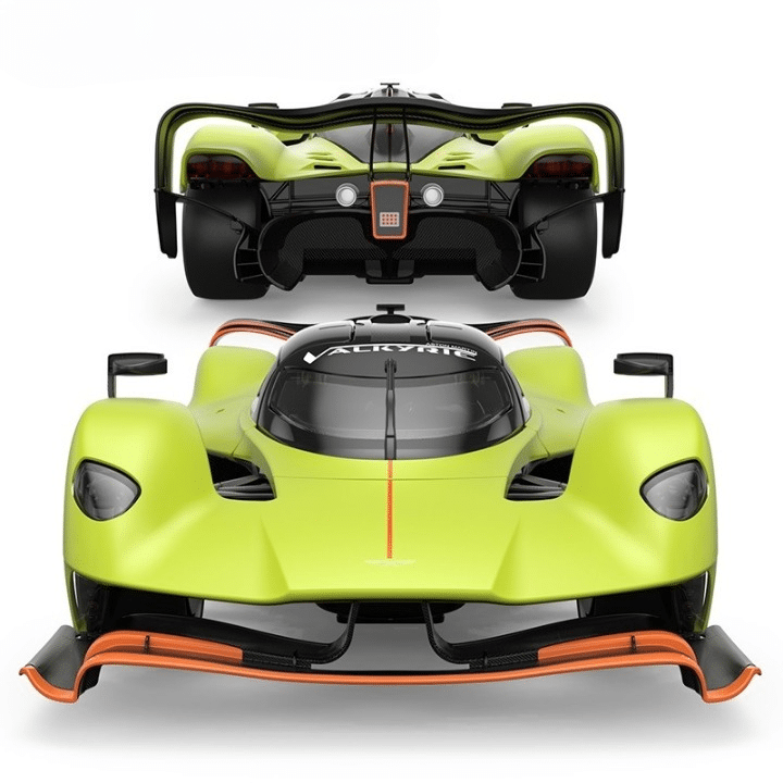 L’Aston Martin Valkyrie rc impressionne dès le premier regard avec son design fidèle à la célèbre Valkyrie AMR PRO. Son look réaliste et détaillé reproduit parfaitement chaque ligne de la voiture d’origine, avec une carrosserie en métal et plastique injecté qui lui donne une allure solide et soignée. Le coloris vert clair racing green attire l’œil et souligne le style sportif typique d’Aston Martin.