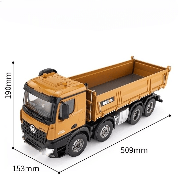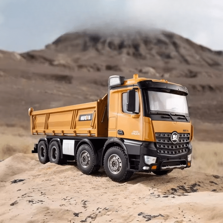 Le coffret comprend le camion de chantier télécommandé, la batterie, la télécommande et les accessoires nécessaires pour profiter pleinement de toutes ses fonctionnalités. Certifié CE, ce modèle associe réalisme, puissance et plaisir de conduite.