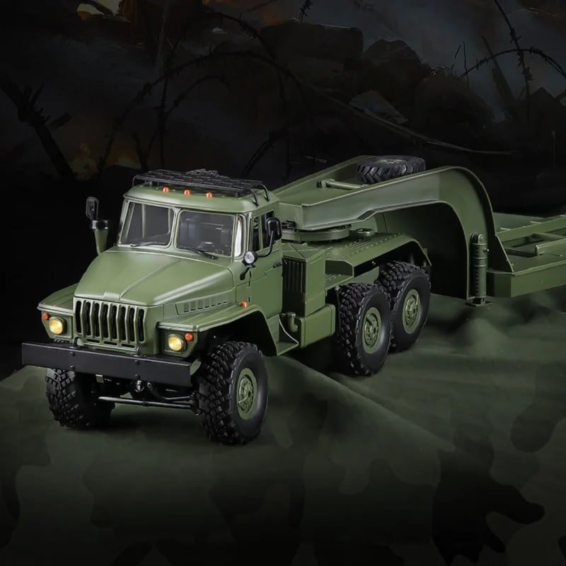 Le camion radiocommandé impressionne avec son format militaire 6×6 à l’échelle 1/16, parfait pour les passionnés de modélisme. Son capot ouvrable permet d’examiner les détails du moteur comme sur un vrai véhicule. Avec sa rampe de remorque basculante, charger et décharger devient un vrai jeu. Les feux fonctionnels ajoutent un réalisme saisissant, même en conditions de faible luminosité. Grâce à ses pneus tout terrain, il franchit sans difficulté les obstacles et les terrains accidentés.