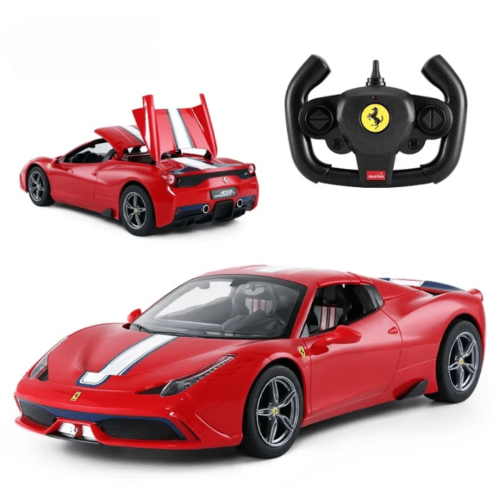 Les feux fonctionnels de la ferrari 458 rc apportent un vrai réalisme dès qu’elle roule, surtout quand la lumière est faible. Avec son look rouge 458 speciale A à bande blanche, elle reproduit fidèlement le style iconique de la célèbre sportive. Son corps moulé par injection et son design décapotable renforcent encore cette impression de conduire une vraie Ferrari en miniature.