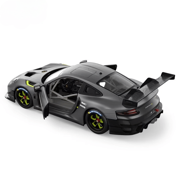 La Porsche 911 GT2RS Clubsport 25 grise attire tout de suite l’œil avec son design très réaliste qui reproduit chaque ligne de la voiture originale. La carrosserie est fidèle au modèle, jusque dans les moindres détails, ce qui donne un rendu impressionnant quand elle roule.