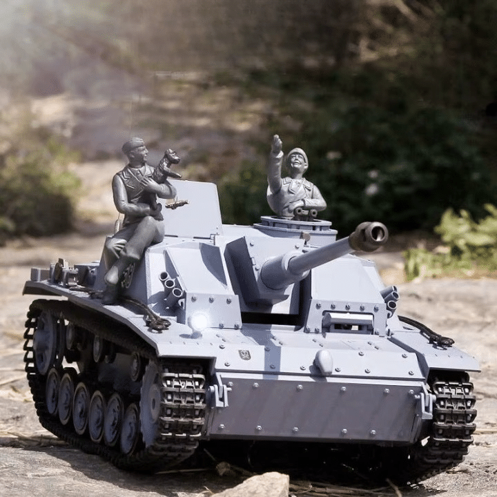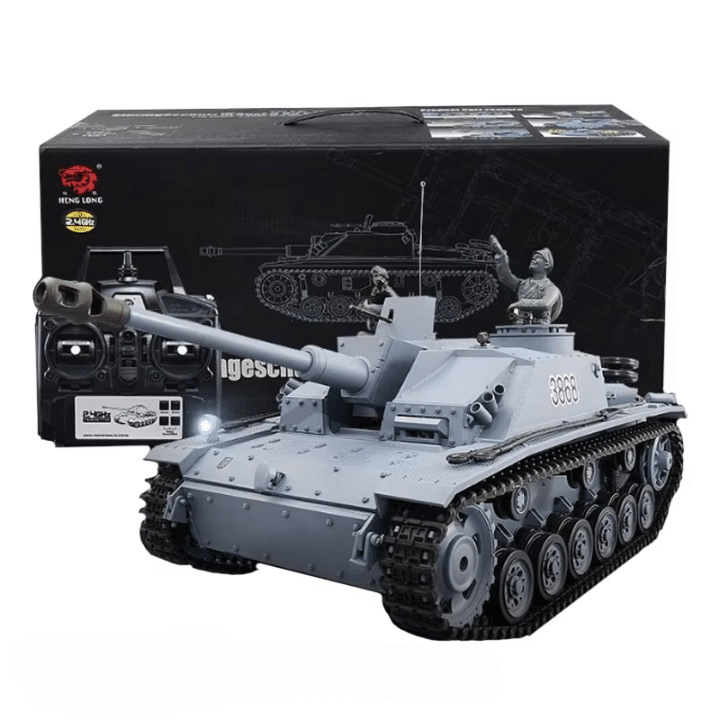 Ce modèle inclut une télécommande, un chargeur, une batterie rechargeable, un produit fumigène, une cible et deux soldats, pour varier les mises en scène et compléter l’expérience. Le design réaliste inspiré du Stug III en fait une pièce de collection autant qu’un véhicule radiocommandé à utiliser en extérieur. Avec sa finition détaillée et ses accessoires complets, le stug 3 rc tank combine robustesse et immersion pour tous les passionnés de chars.