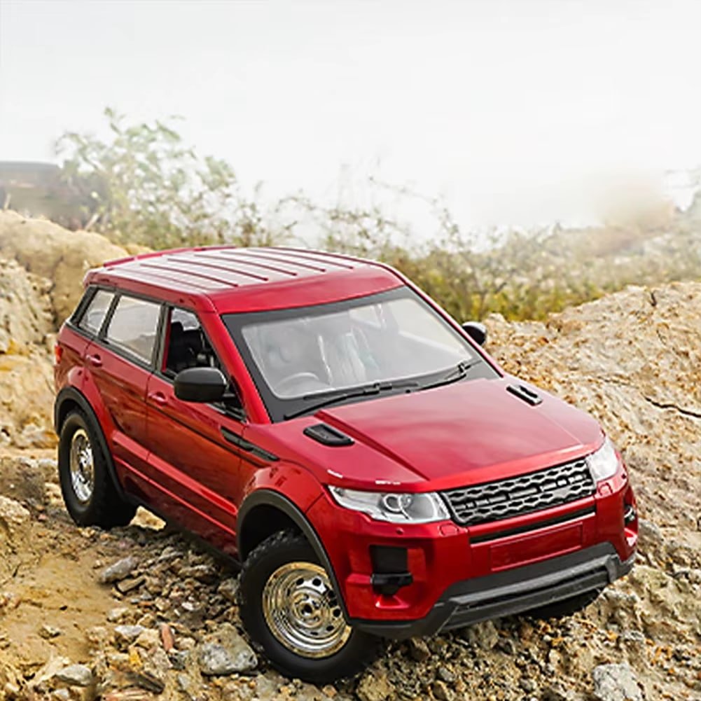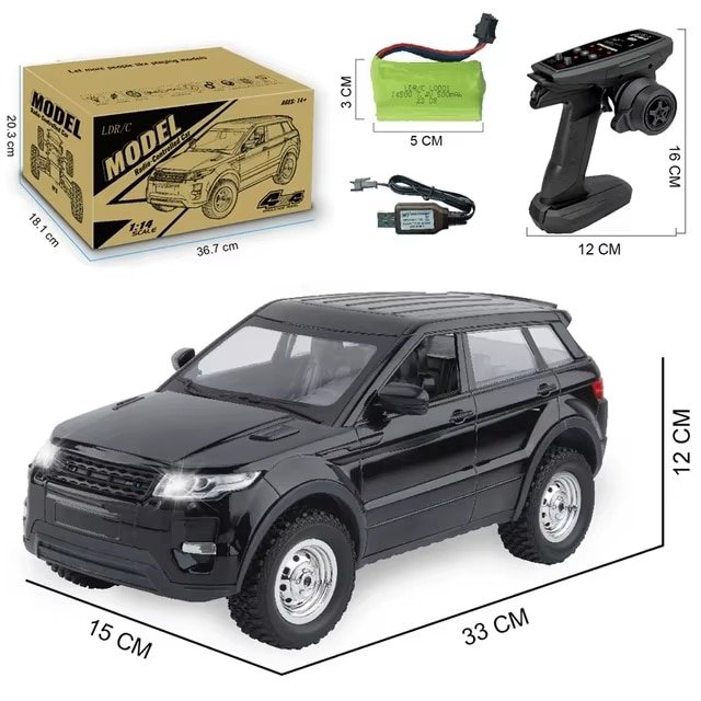 La voiture 4×4 télécommandée offre une autonomie d’environ 20 minutes grâce à sa batterie lithium 7,4V 2s Li-Po, rechargeable avec le câble USB inclus. Disponible en rouge ou noir, ce modèle à l’échelle 1/14 mesure 33 × 15 × 12 cm et reproduit fidèlement le style d’un Range Rover Evoque avec des finitions détaillées.